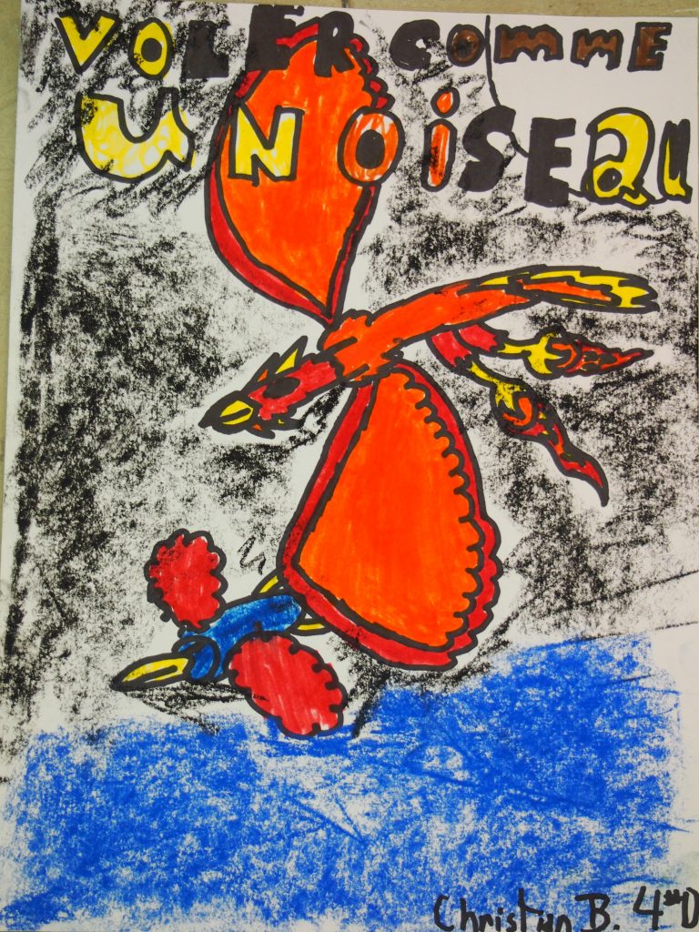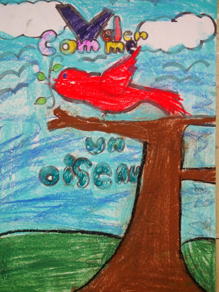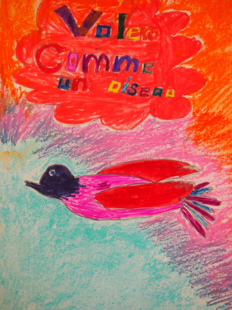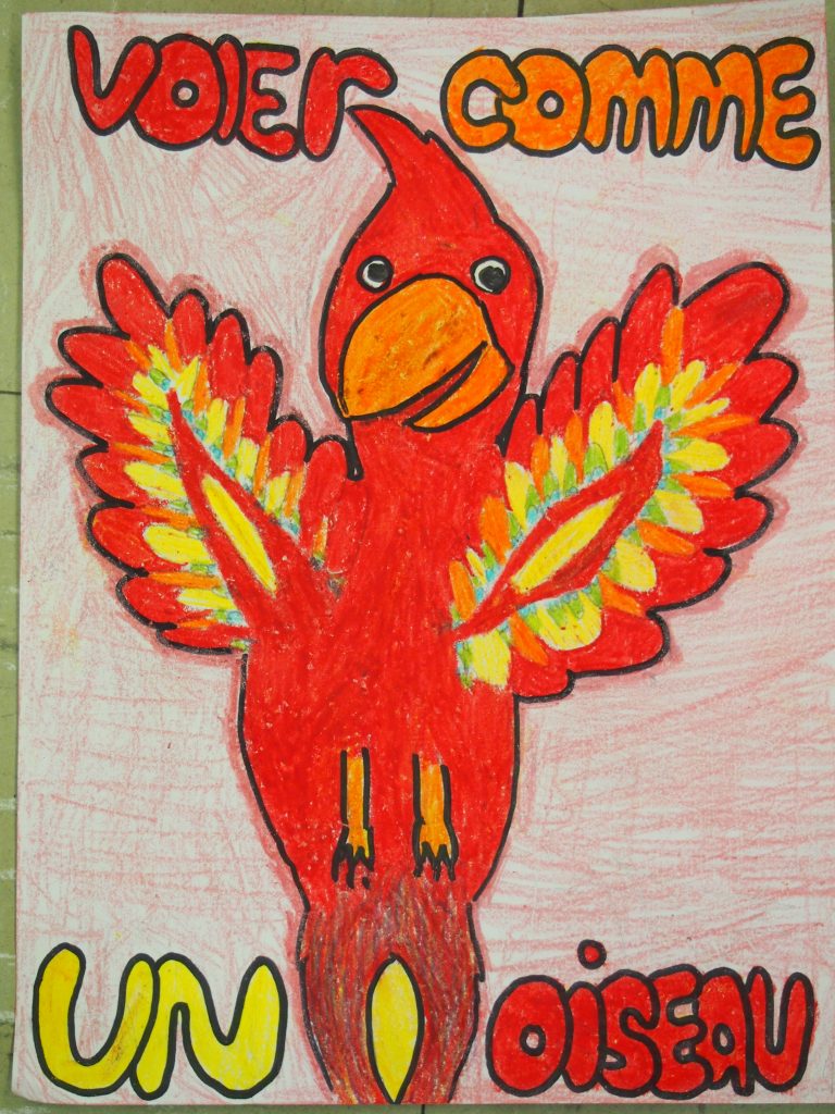 Personnellement je suis déjà une ardente adepte de musique contemporaine depuis mon Cégep. J’apprécie énormément de faire connaitre la musique actuelle aux enfants qui sont souvent bien plus ouvert qu’on pense. J’ai d’ailleurs réussi à convaincre un collègue, au départ bien récalcitrant, à la musique contemporaine. Et il a été bien heureux de ce que nous avons fait ensemble avec la chanson de « Voler comme un oiseau ». (Mon collègue) a découvert que la musique contemporaine qu’on englobe parfois en vrac comme une musique inaudible et inaccessible, hermétique, peut être variée et tout à fait accessible comme celle de Denis Gougeon compositeur formidable pour initier un public frileux. Merci à la SMCQ. (…) La contagion grandissant au-delà des classes inscrites à la grande écoute. Mon autre collègue a fait créer par ses élève de 4e année une partition de « Voler comme un oiseau », proposé dans le guide. Ils ont fait de belles pages couvertures pour leurs partitions je t’en envoie quelques modèles. (…)La trousse était très bien faite nous n’avons pas eu le temps de tout expérimenter, mais elle reste en banque pour les prochaines années. Merci infiniment.
